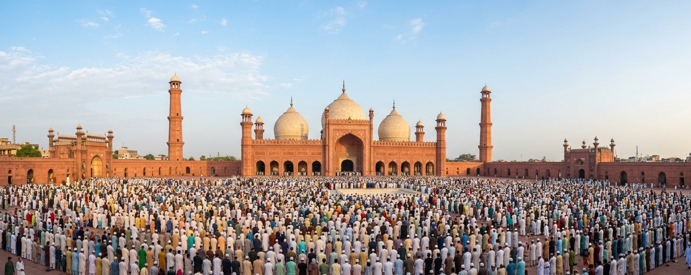 Badshahi Masjid: The biggest congregation in the city will be held here where Eid prayers will be offered at 08:30 AM.